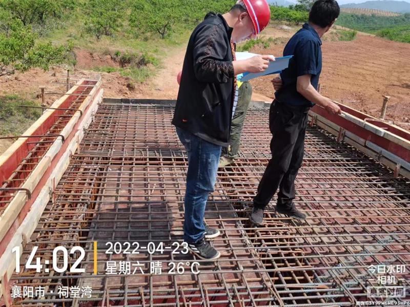杉樹林水庫監(jiān)理對機(jī)耕橋進(jìn)行鋼筋驗收
